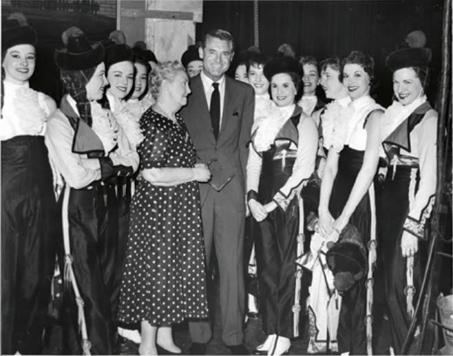 They were the quintessential American chorus line, drilled with military precision and style. They came to epitomise the age of glamour right through the 1930’s, 1940’s and 1950’s. Choreographer Russell Markert, staged many stunning performances, with Radio City featuring a lavish live show every week, along with a new movie ! Hollywood Movie Stars graced the doors of Radio City Music Hall at premiere after premiere. Below is an image of Cary Grant with the Rockettes.