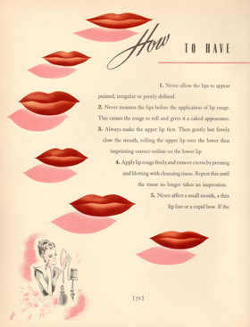 Restored and colourfully illustrated, learn the art of 1940s pin-up makeup as taught by the famous Westmore Brothers. The defined make-up and beauty style of the war years was a no holds barred luscious mouth, prominent eyebrows and glorious long hair, often tied up in the now famous war-time up-dos, but there are many trade secrets that women of that era learned that are not commonly known today.